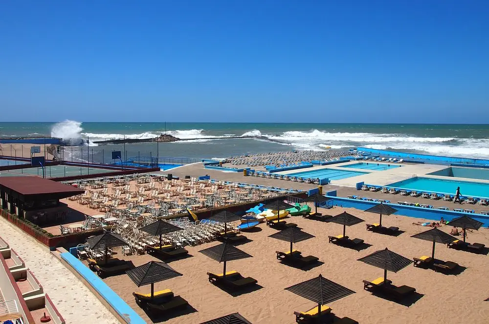 Description : Known for its string of glamorous Atlantic beach clubs, La Corniche, part of the Ain Diab neighborhood, is popular with a fashionable crowd of sunbathers and surfers. After dark, the action moves to the area’s trendy nightclubs, cocktail lounges, and sea-facing bar terraces. Dining options along Boulevard de la Corniche range from simple counter-serve joints to fancy French restaurants